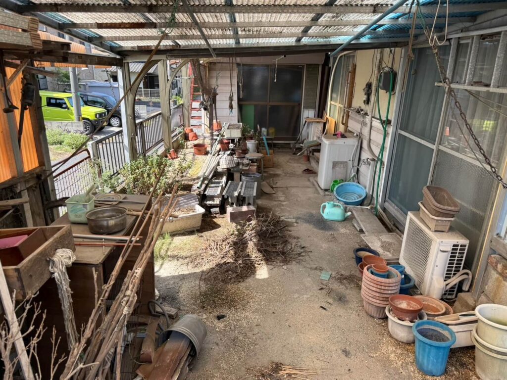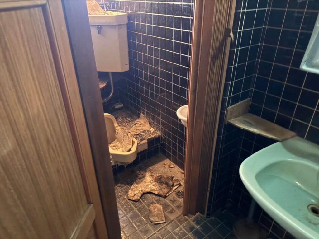 大きな住宅でしたが、室内には生活用品やゴミがあふれ、寝る場所も分からないほどの状態でした。庭にも鉢や資材などの不用品が長年にわたり溜まっており、さらにトイレは屋根が壊れて使用できないほど老朽化していました。