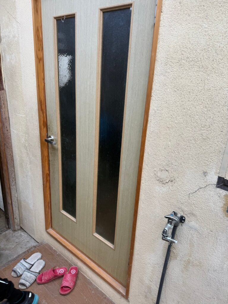 現場には、ガラス入りの開き戸と、木製のガラス引き戸がありました。