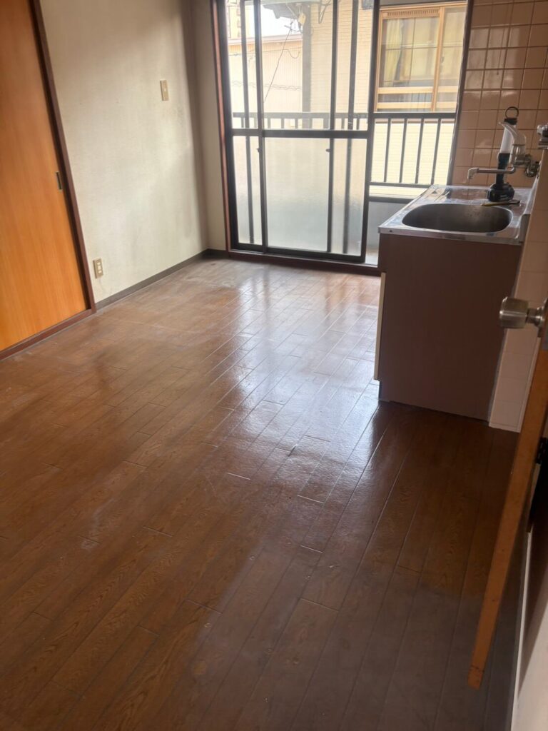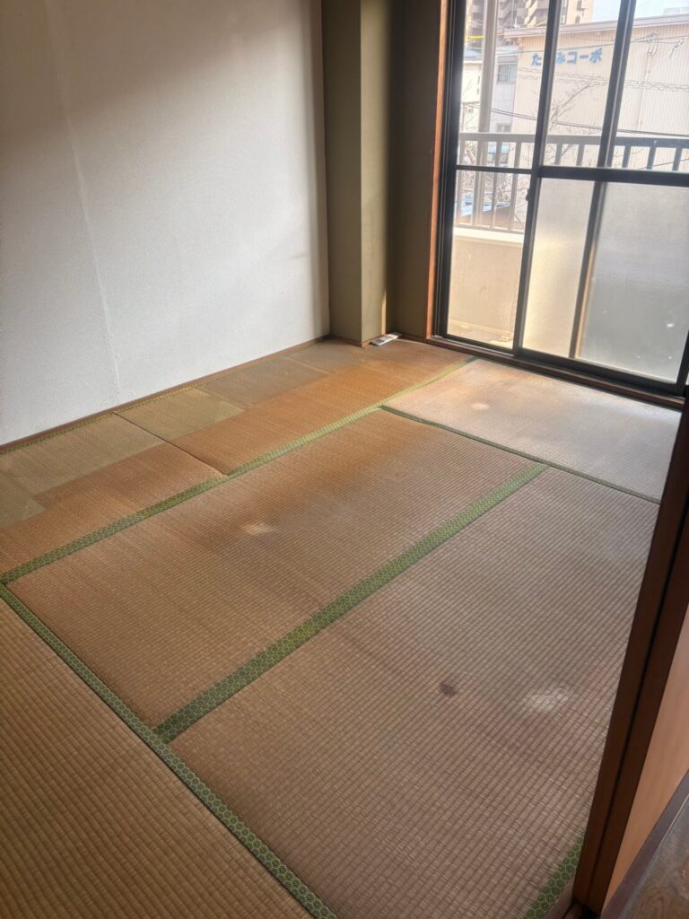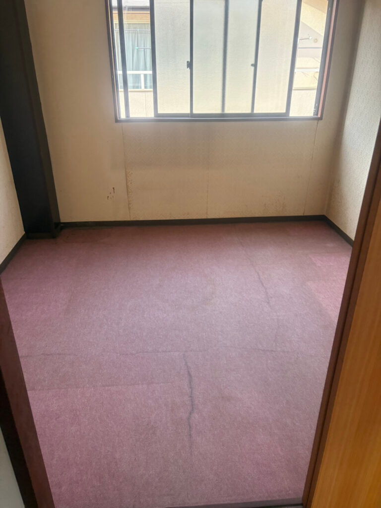 すべての部屋から家財が撤去され、畳の和室・カーペット敷きの洋室・フローリングのダイニングキッチン・ベランダまで、物がない状態に整いました。押し入れの中も空になり、退去・明け渡しが可能な状態となりました。