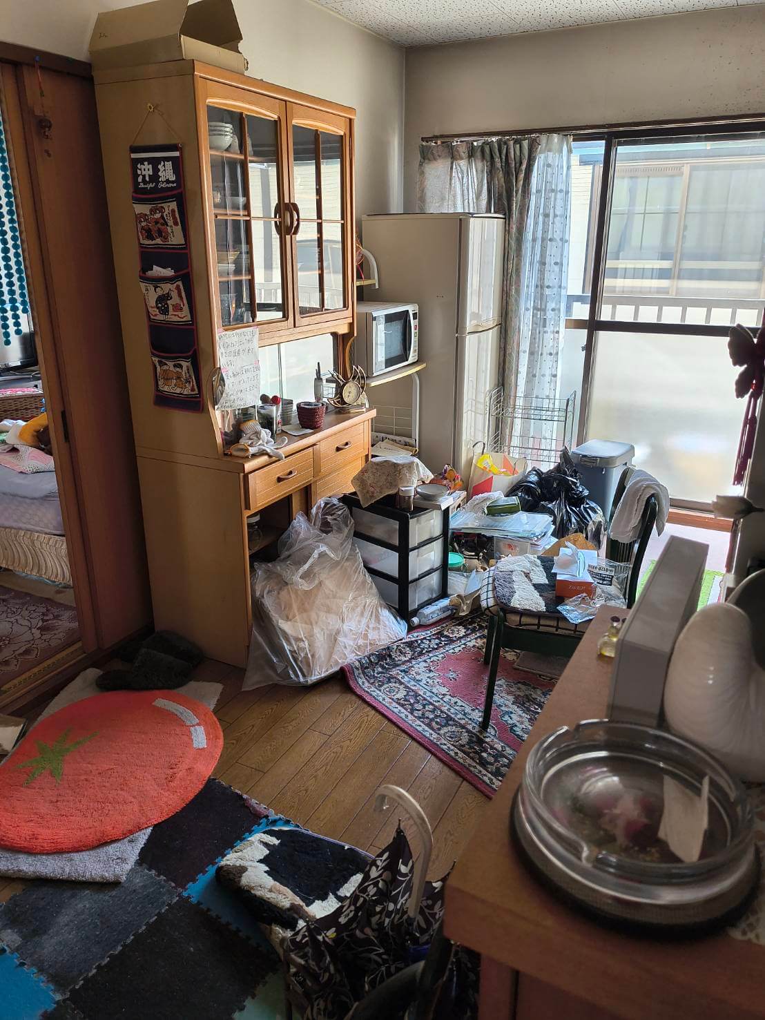 成年後見人様からご連絡をいただき、現地にてお見積りを実施しました。複数の部屋に家具・家電・生活用品が残っている状態でしたが、作業内容と費用を事前にご説明し、ご了承いただいたうえで作業に入りました。